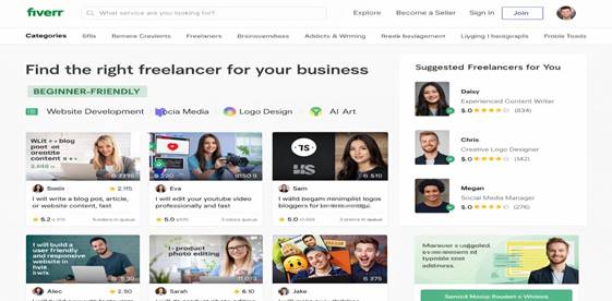 Fiverr is ideal for beginners because freelancers can create “gigs” and clients hire directly.