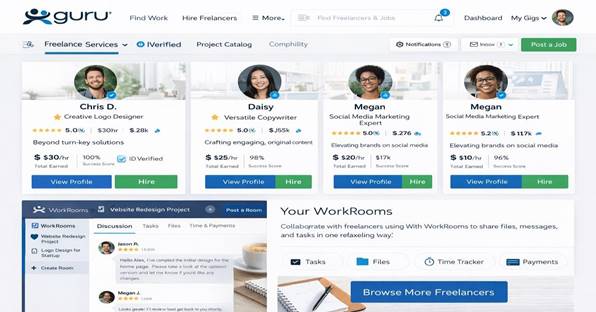 Example: A beginner programmer can complete projects safely using Guru’s structured payment system.